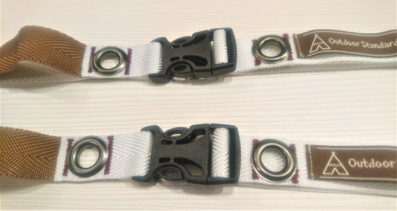 ●バックルアジャスターによるテンションのかけすぎは、テープ、ハトメ及びバックルが破損する恐れがありますので、ご注意ください。